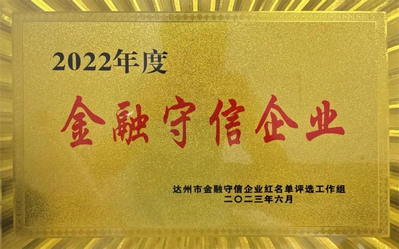 20236經(jīng)我市16家行業(yè)主管部門(mén)嚴(yán)格審核并公示無(wú)異議,評(píng)選出2022年“金融守信企業(yè)”紅名單,我司以良好的信用管理水平獲此殊榮。202374日農(nóng)業(yè)發(fā)展銀行達(dá)州分行正式將牌匾授予我司。