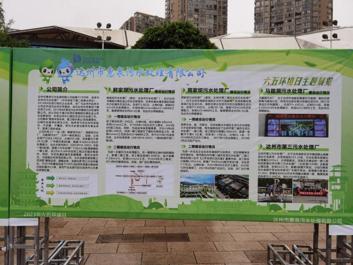 共建綠色家園“再動員”。6月5日活動當天,公司員工參加了達州市六五環(huán)境日主題宣傳活動,通過展板宣傳污水處理相關(guān)知識,向群眾發(fā)放宣傳手冊宣傳低碳生活、綠色環(huán)保知識,呼吁現(xiàn)場廣大市民朋友珍惜水資源,愛護達城水環(huán)境。并積極參與“達州藍”小程序推廣和運用活動。