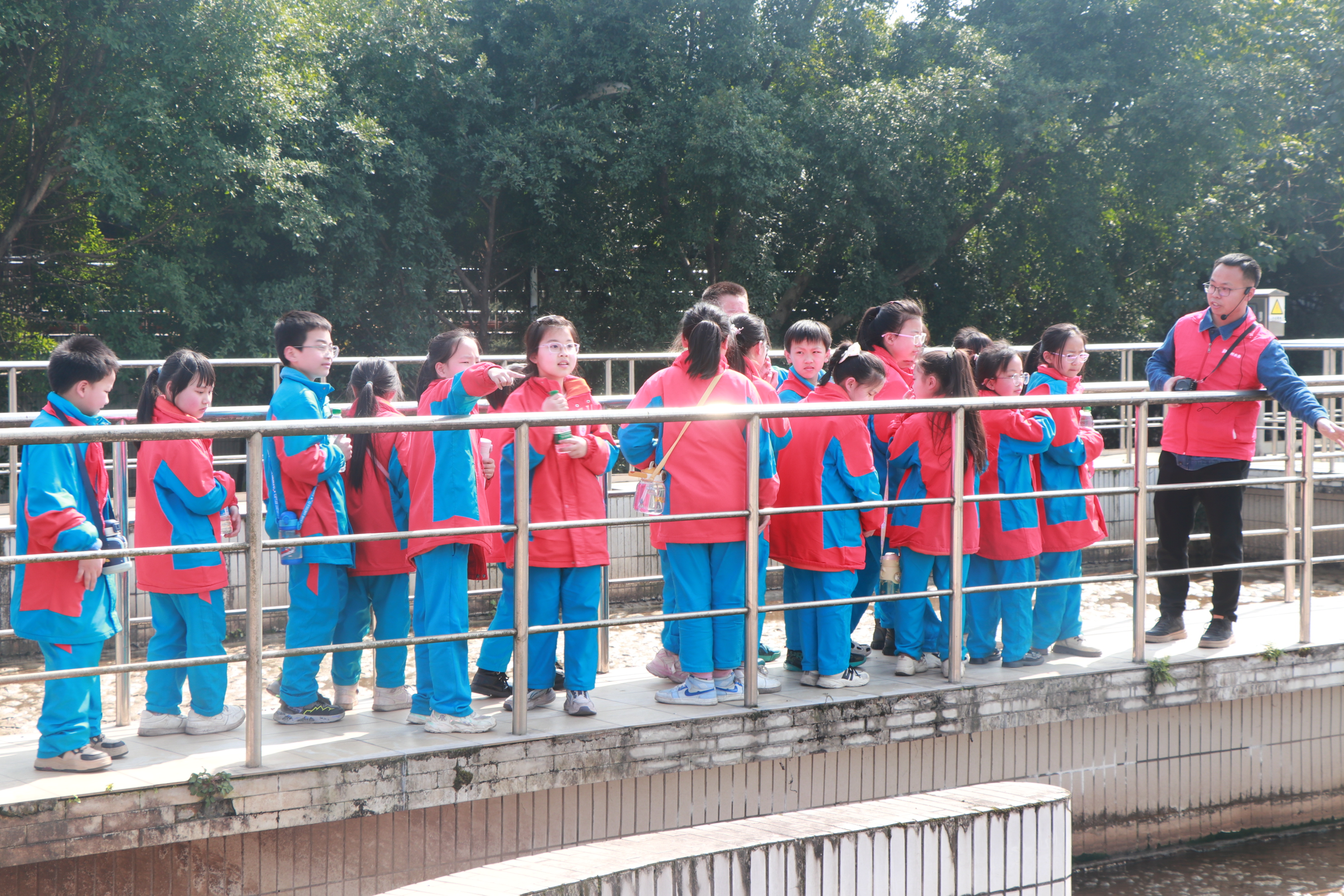 然后的實地參觀環(huán)節(jié),師生依次走過生化池、二沉池、出水口等區(qū)域。了解生化池里微生物“吃掉”污染物的神奇過程,目睹渾濁污水逐步變成清澈水流,對污水處理的復雜工藝和神奇效果有了直觀體驗。