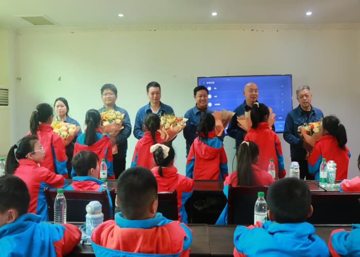 工作人員結合世界水日與中國水周的主題,為同學們深入淺出地講解中國水資源特點,以及污水產生的危害和處理的必要性,讓大家深刻認識到保護水資源刻不容緩。小學生代表們獻鮮花合影留念、觀看工藝處理視頻(動畫片)。