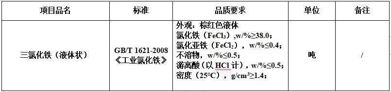 2.1 項目名稱:達(dá)州市惠泉污水處理有限公司2020年度三氯化鐵采購項目