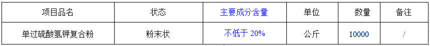 2.1 項目名稱:達州市惠泉污水處理有限公司2020年度單過硫酸氫鉀復(fù)合粉采購項目